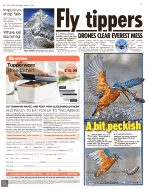 On 7th August 2024 I had 2 of my images of a Kingfisher published in The Star and The Guardian.